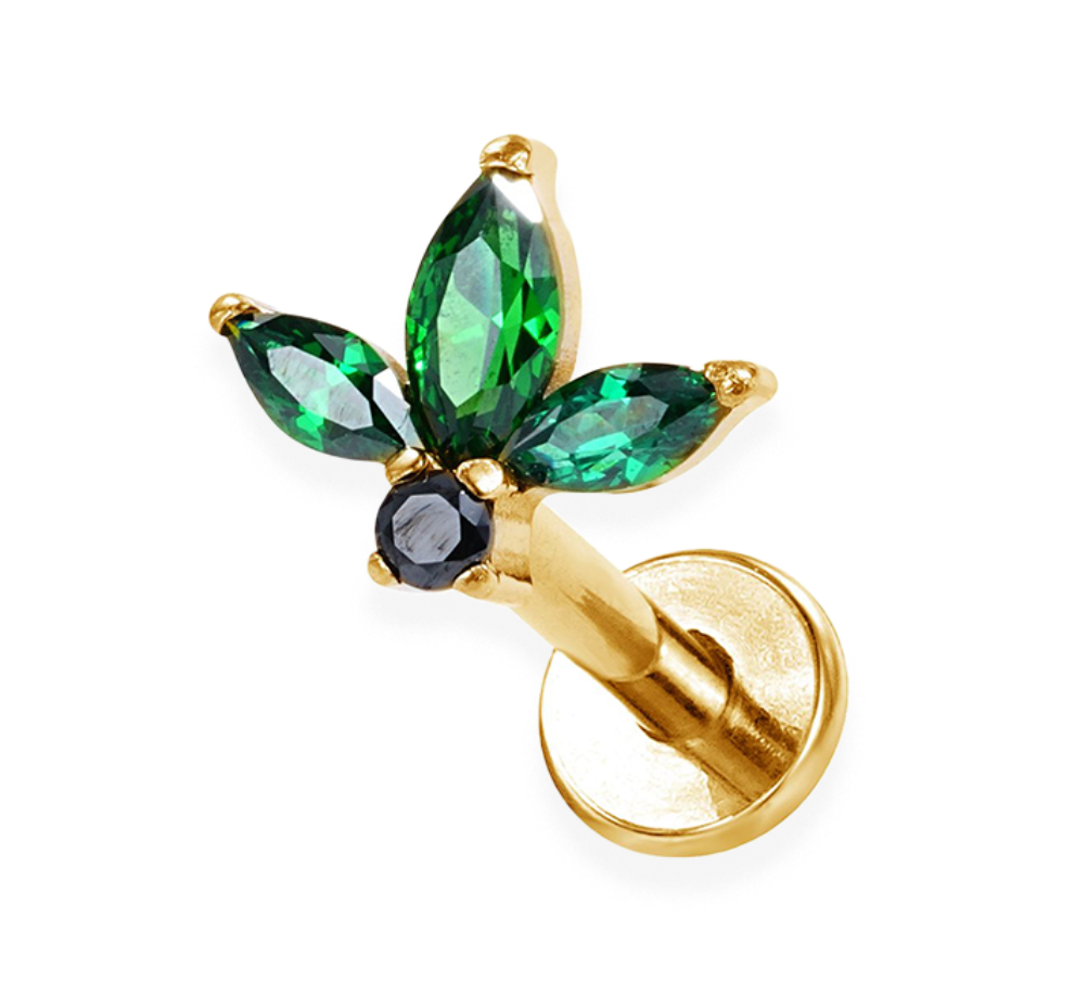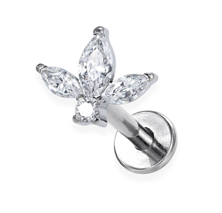 Ajoutez une touche d'élégance et de raffinement à votre piercing avec cet embout en titane ASTM F-136, orné de magnifiques pierres en zirconium taillées en forme de feuille. Son design délicat et scintillant s’adapte parfaitement à divers piercings, sublimant votre style avec finesse.