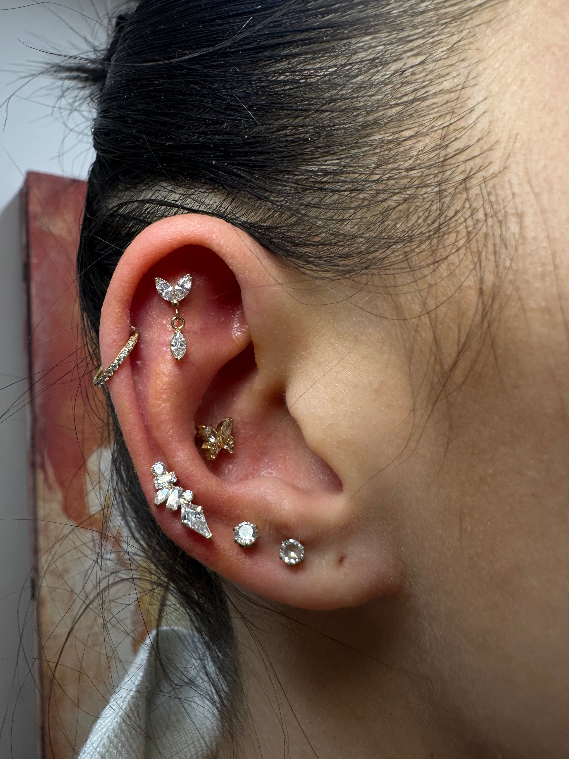 Idéal pour hélix, lobe, conch, flat, mid-hélix et tragus.