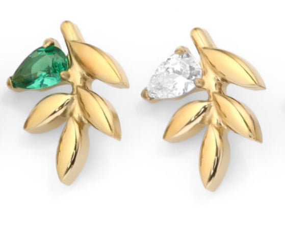 Labret Titane ASTM F-136 en forme de feuille orné d’un zirconium premium blanc ou vert. Comme une goûte qui perle au soleil.