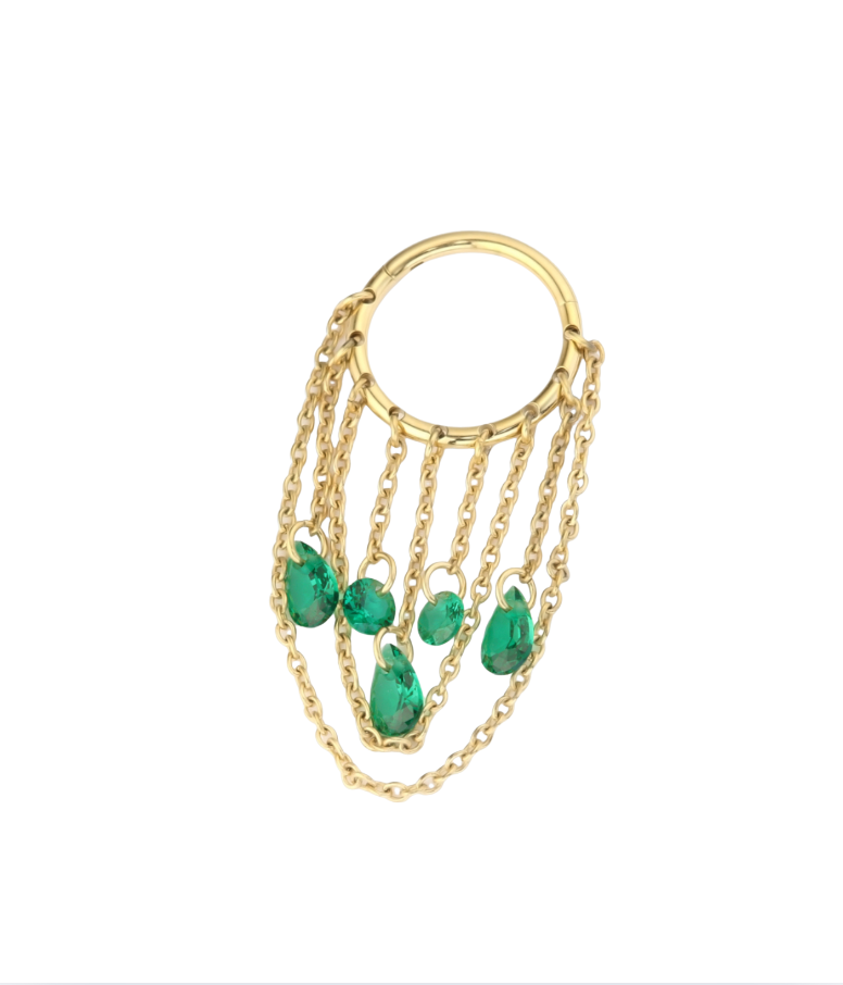 Piercing Clicker en Titane ASTM F-136 avec Chaînettes et Émeraudes Vertes – 1.2 × 8 mm.