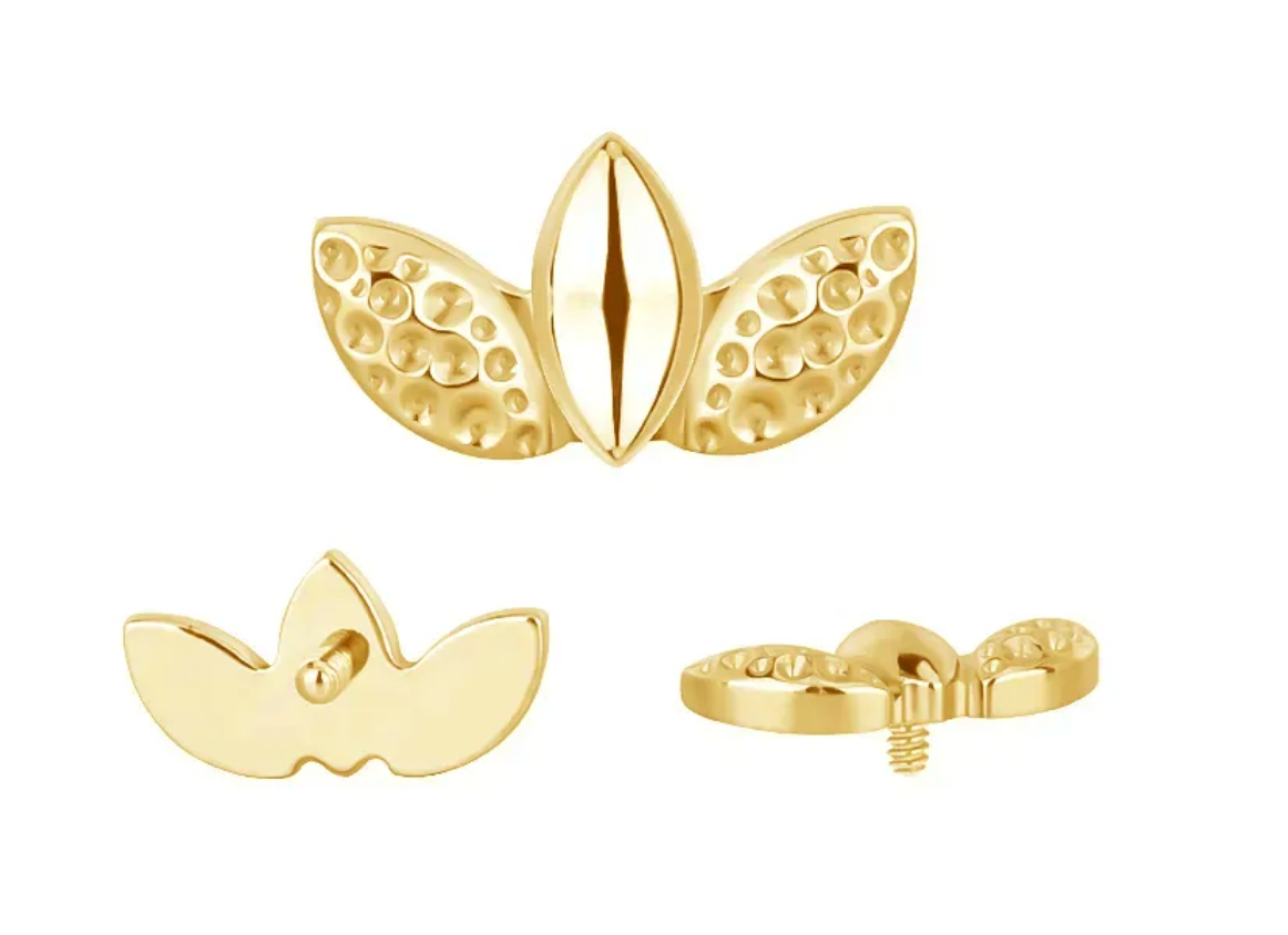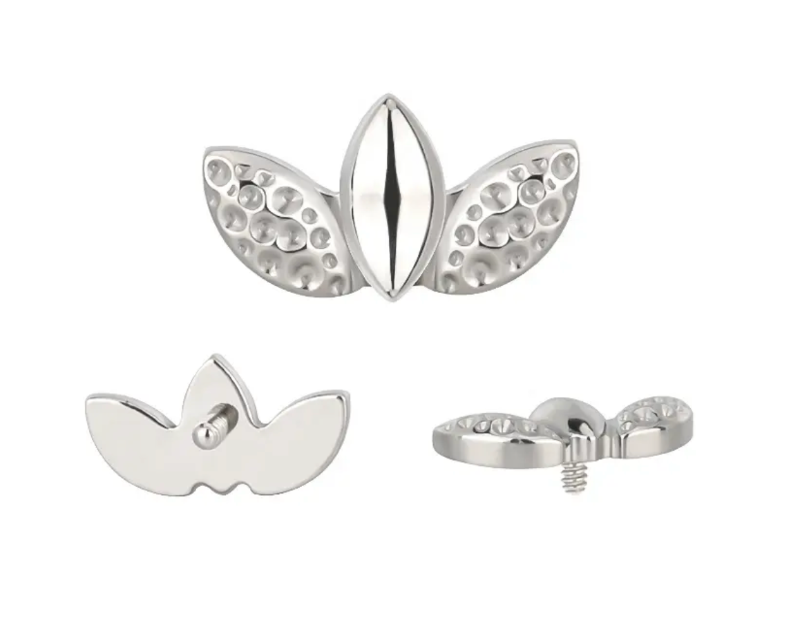 Piercing marquise 3 branches martelées. Titane ASTM F-136, vissage interne.