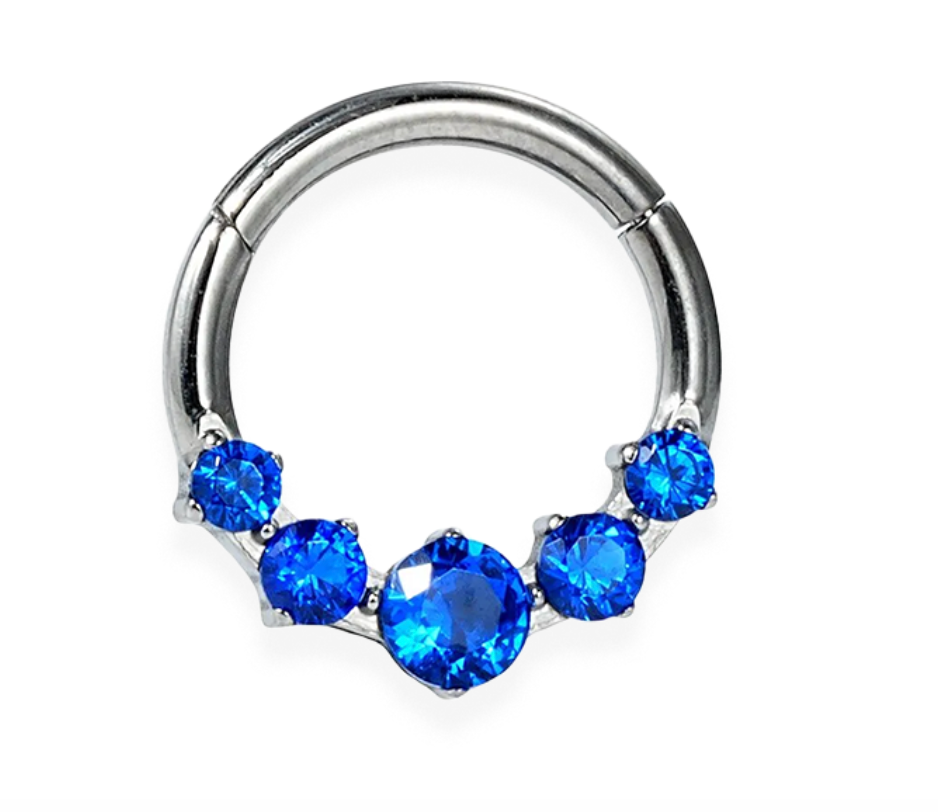 Anneau Clicker Titane ASTM F-136 avec zirconium bleu topaze.