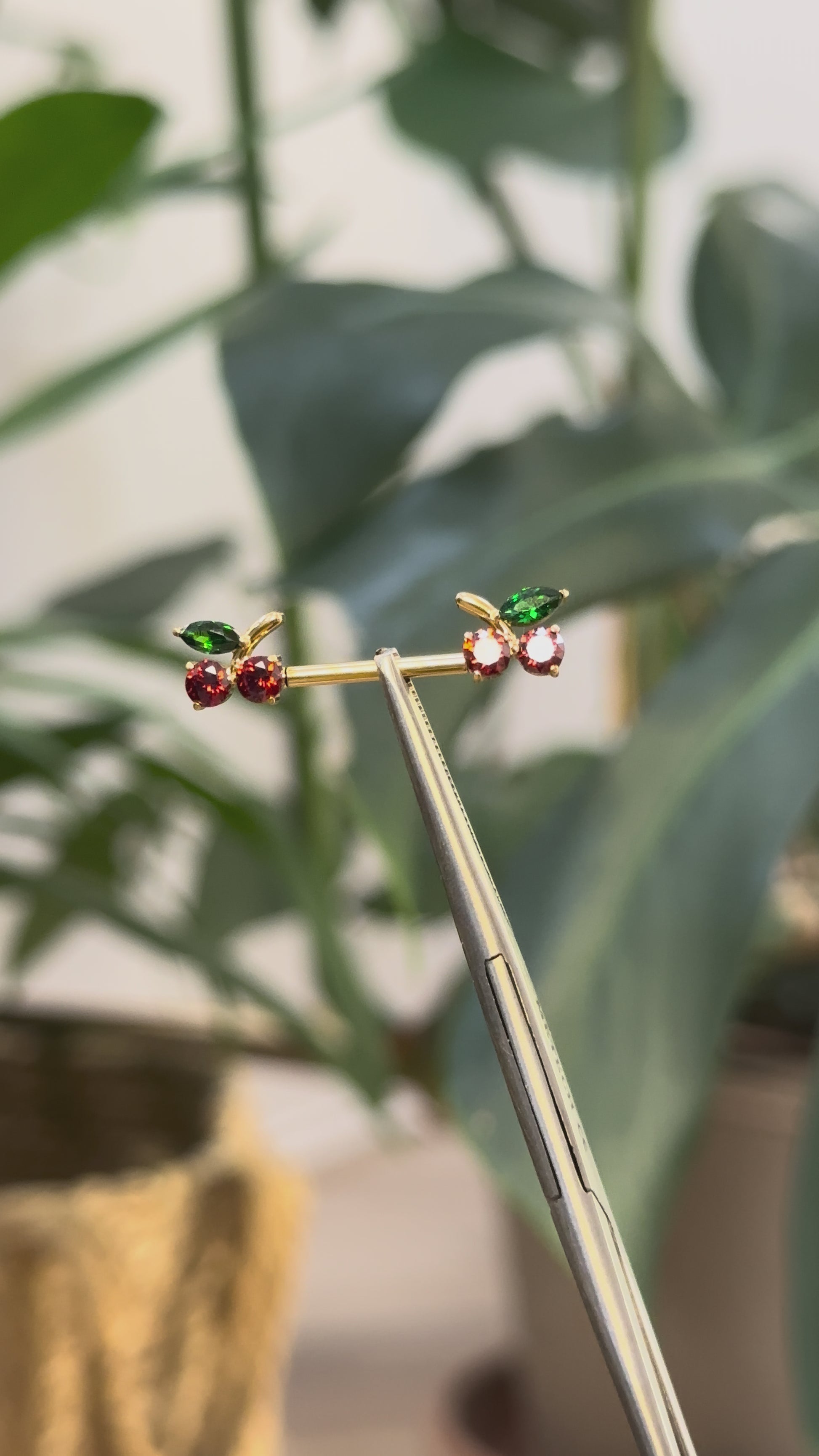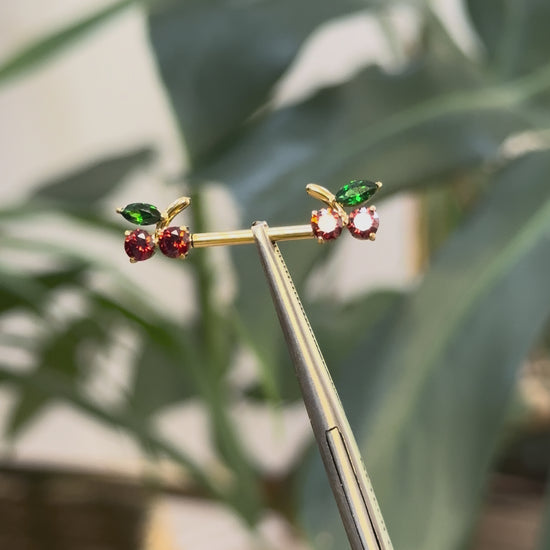 Incroyable design de piercing pour tétons. Zirconium taillé rouge et vert taillé en forme de cerise. Un look glamour, coquin et chic à la fois avec un matériaux durable et résistant.