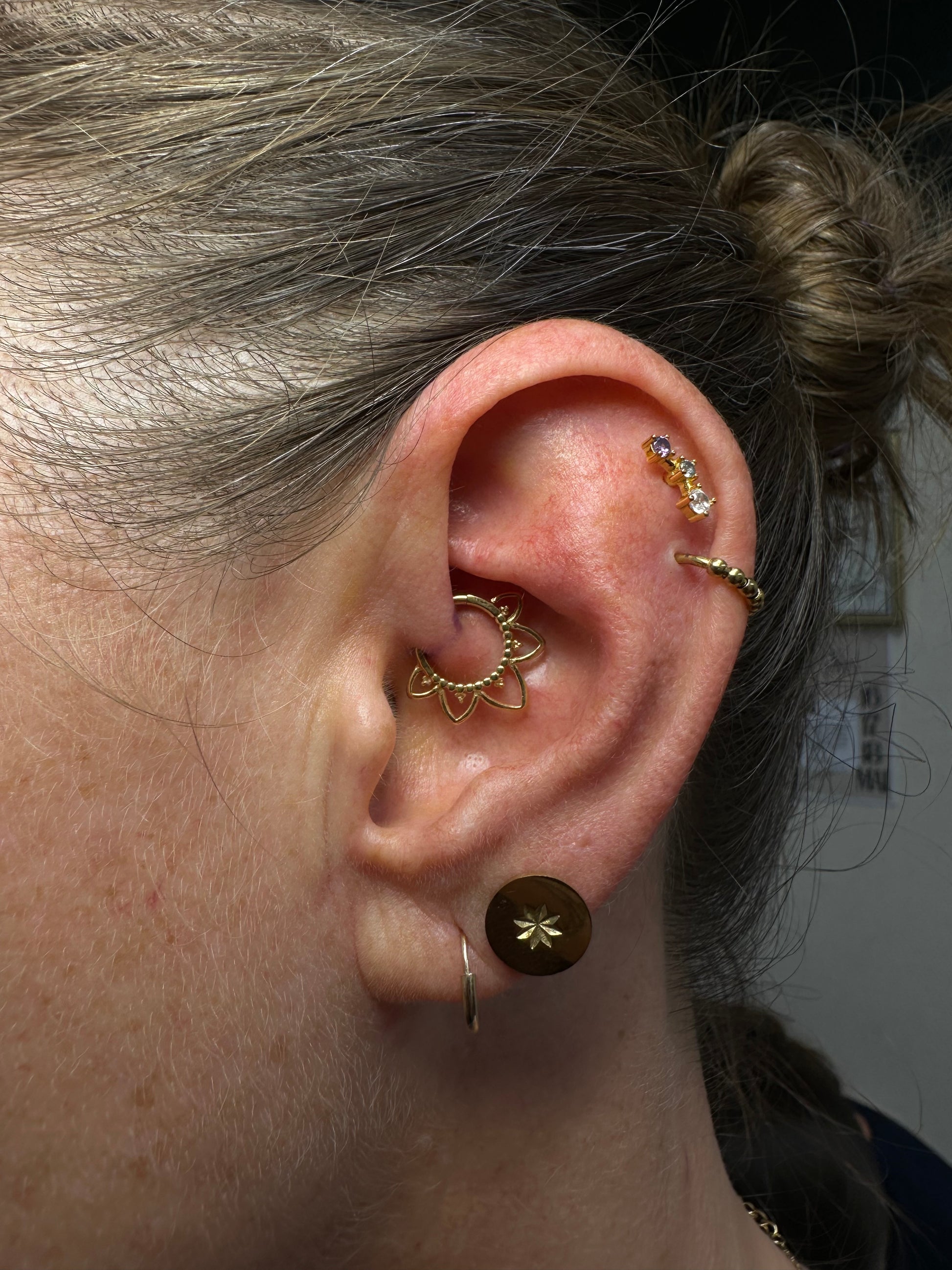 Ajoutez une touche d'élégance et de raffinement à votre piercing avec cet anneau clicker en titane ASTM F-136. Ornemental, idéal pour sublimer votre smiley, daith ou septum.