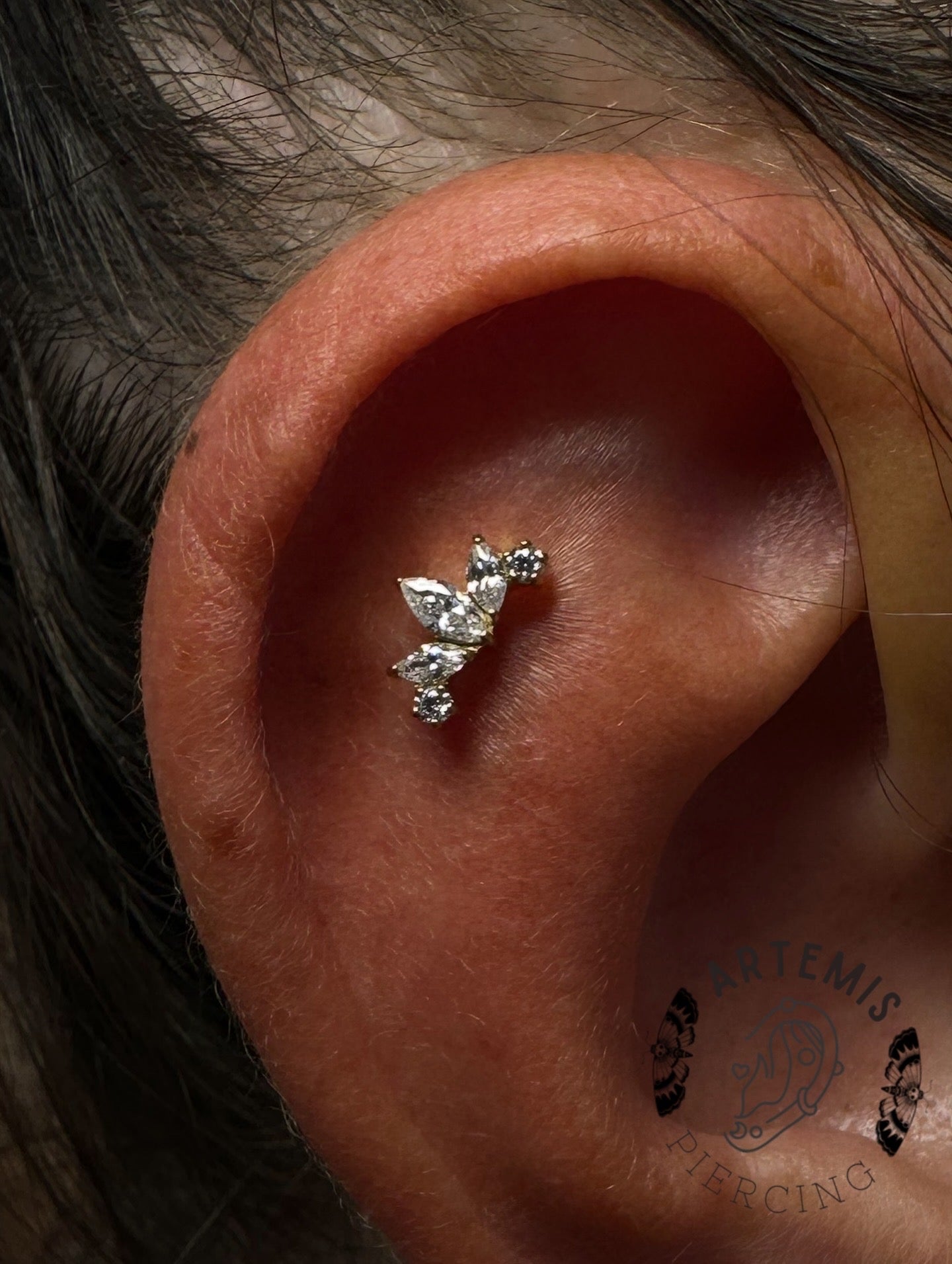 Piercing marquise 3 branches en zirconium premium. Titane ASTM F-136, vissage interne.